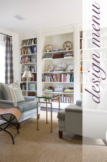 Design Menu Interiors & Decorating We have worked as a scout and stylist for several magazines and volunteered with numerous organizations. We have had the pleasure of working with dozens of clients over the past twenty years on projects large and small. We have consulted on all aspects of a project from the first blueprint to the last light bulb. Working both in Birmingham and out-of-town, we have clients throughout the Southeast. Sometimes we work from start to finish, but often times it is to “fluff” an already pretty room for a party or the holidays. In addition to the services shown above, we offer unique design services for homeowners and realtors in styling, entertaining or staging a property for purchase or sale. {contact us for more information} It is the ongoing relationship and friendship with many clients that has been the real joy of our work. {services/resources} |